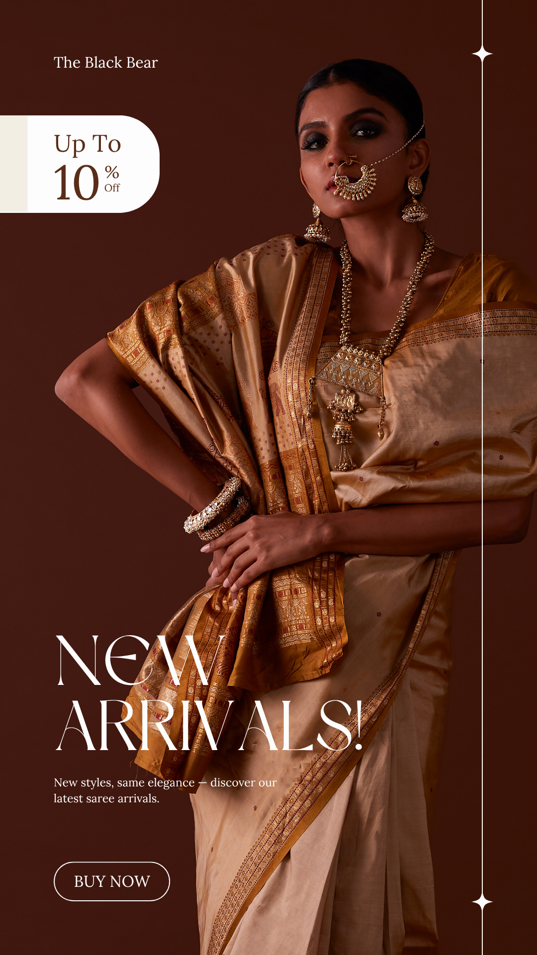 Something beautiful is on its way! The Black Bear is preparing to launch stunning saree collections crafted with elegance and modern charm. Stay tuned for our grand reveal — where tradition meets style in every weave and drape.